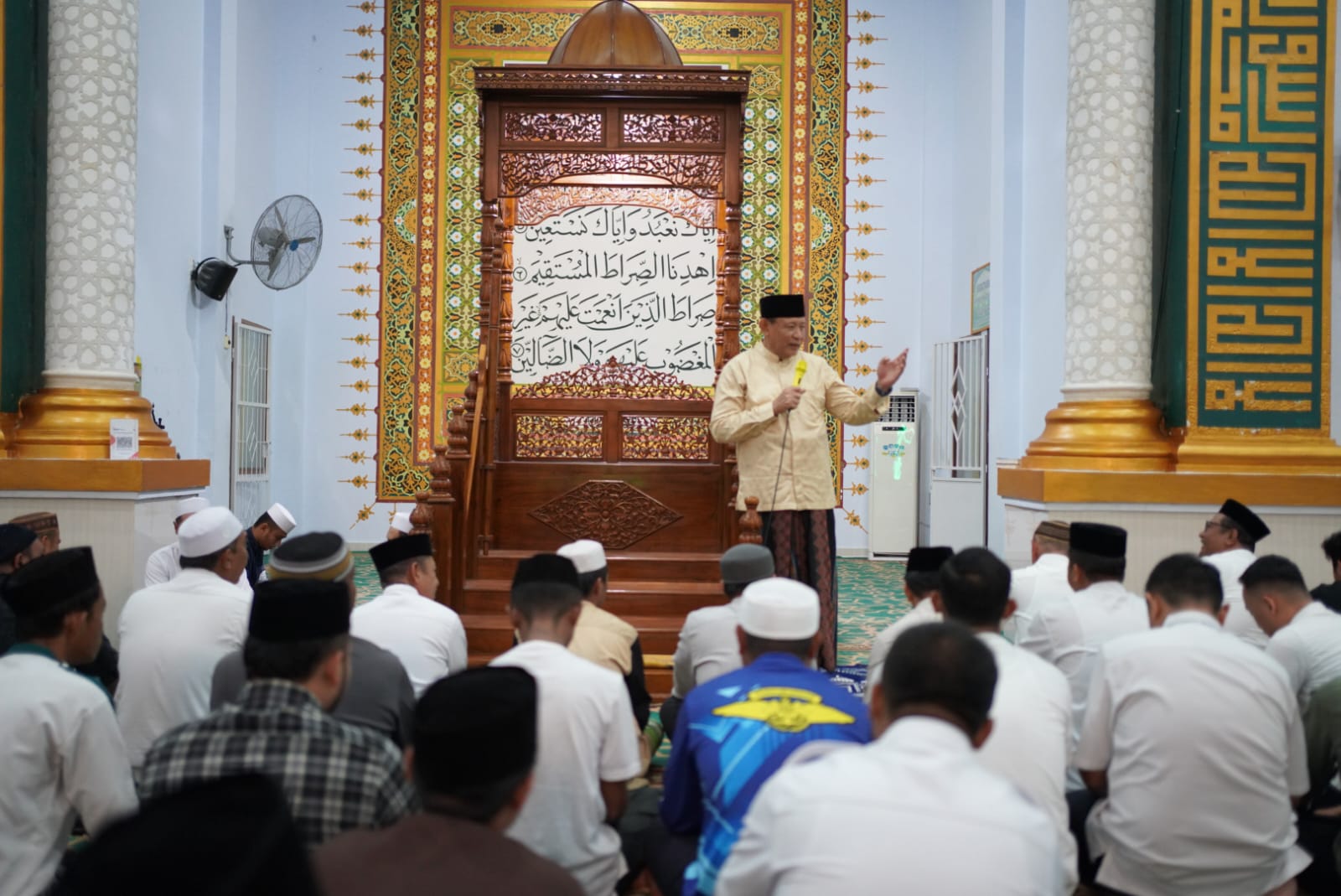 Gubernur Gusnar Ismail saat menyampaikan sambutan di Mesjid Agung Baiturahim, Kabupaten Pohuwato. Rabu (25/02/2026).