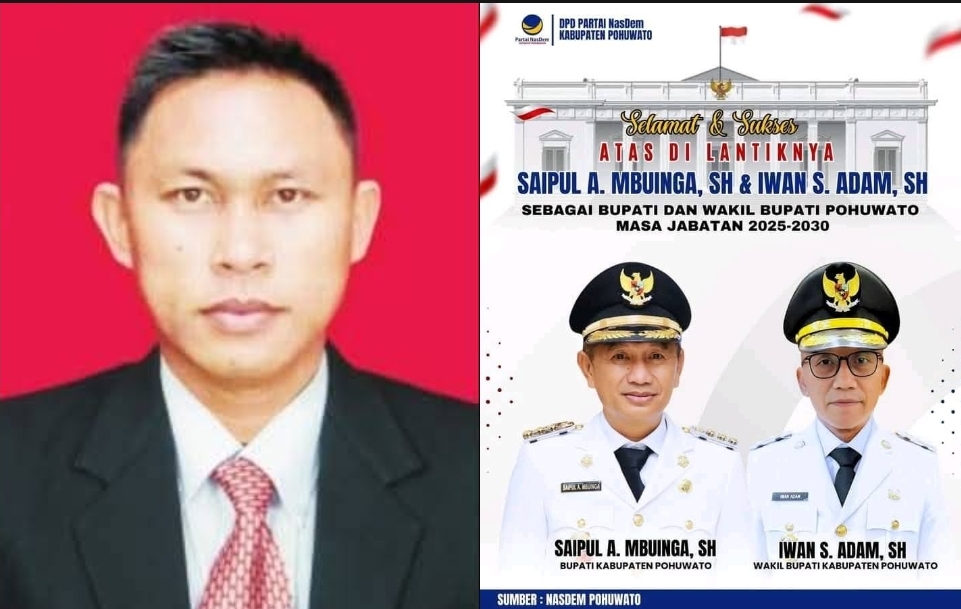 Hariantimur.id, GORONTALO – Ketua DPW LSM Galaksi, Jemi Hado, mengucapkan selamat dan sukses atas pelantikan Bupati dan Wakil Bupati Pohuwato terpilih, Saipul A. Mbuinga, SH., dan Iwan S. Adam, SH., untuk periode 2025-2030.