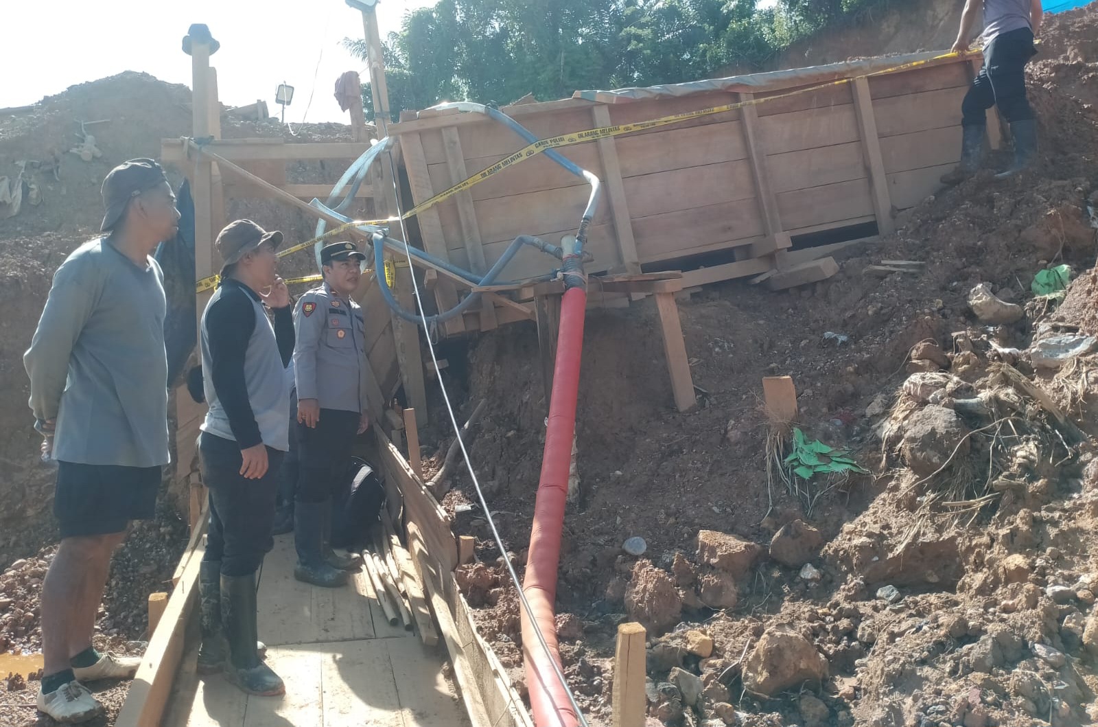 Sebagai bentuk penegakan hukum, aparat memasang garis police line pada empat titik lokasi PETI untuk memperjelas status penyelidikan.